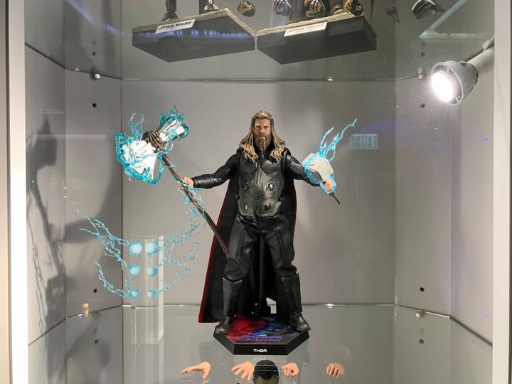 クリス・ヘムズワースの映画での姿に基づいて巧みに作られたこのマーベルアクションフィギュアは、新たに開発されたヘッドスカルプを特徴とし、異なる色の目を持ち、雷の力を使うトールを強調する特殊な光反射効果が施されています。身体的変化を描いた特製ボディは、LEDライトアップ機能を持つ巧みに仕立てられたボディアーマーと、マッチした雷効果のアクセサリー、象徴的な赤いマント、そしてボディアーマーも備えています。LEDライトアップのストームブレイカーとミョルニルは、トールの象徴的な武器を正確にスケール再現したものです。この1/6スケールのコレクタブルフィギュアには、いくつかの雷効果アクセサリーと映画のロゴ入りダイナミックフィギュアスタンドも付属しています。