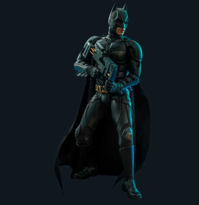 象徴的な漆黒のコスチュームには、アーマー、ガントレット、メタリック・ゴールドのユーティリティ・ベルト、布製のマントとアンダースーツが含まれ、細部までこだわった精巧な作りです。マントはフライト・パックと差し替え可能で、ベルトには超音波カッターや放射線検出器を装着できます。
