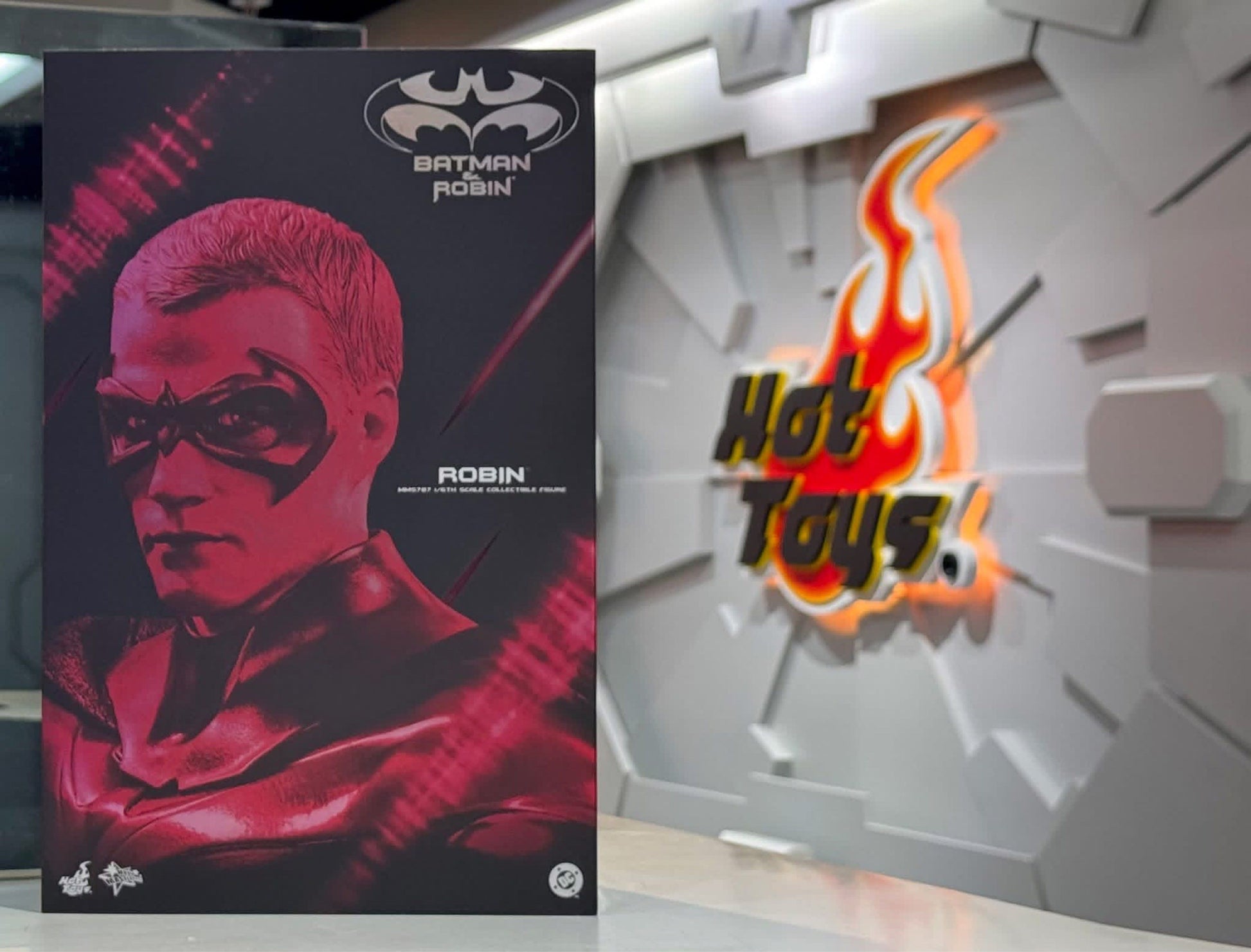 クリス・オドネルのロビンの姿を基に巧みに作られたこの高詳細フィギュアは、独立した動く眼球を持つ新たに開発されたヘッドスカルプ、メタリックレッドのディテールが強調された新しく仕立てられたオールブラックのスーツ、そしてロビンのスローニングバード、レーザーガン、クライミングデバイスのペア、アイスクライミングピックのペアを含む赤と銀のカラースキームの武器とアクセサリーの数々が特徴です。また、特別にデザインされた映画テーマのフィギュアスタンドも付属しています。