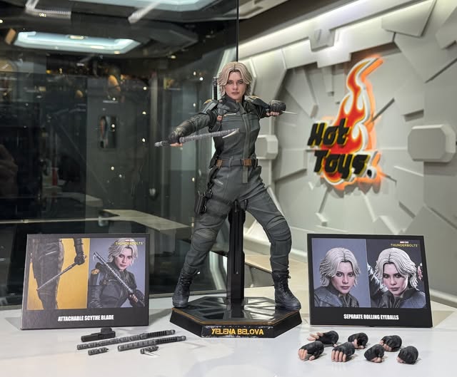 イェレナの戦闘コスチュームは、手縫いのステッチディテールを持つワンピースのタクティカルスーツで再現され、肩のアーマーと両手首に象徴的なブラックウィドウのバイトリストレットが装備されています。彼女のギアは、アイコニックでありながら致命的で、ショートバトンやロングバトンと取り付け可能な鎌の刃、近接戦闘用のピストルや戦闘用ナイフが含まれています。リラックスした姿勢からアクションの準備が整ったジェスチャーや、スーパーヒーローのランドポーズまで、バリエーション豊かな姿勢のための9つの交換可能な手が付属しており、このリリースはダイナミックで表現豊かなポージングのための素晴らしいディスプレイの柔軟性を提供します。