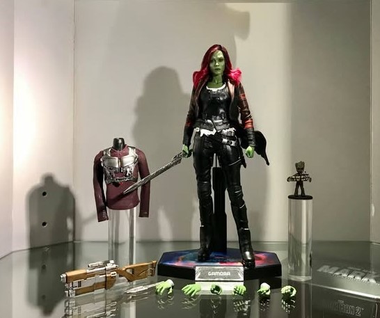 新しいガモーラの第六スケールコレクタブルフィギュアは、映画におけるゾーイ・サルダナのガモーラのイメージに基づいて巧みに制作されています。このフィギュアは、長くてカーリーな黒と赤紫の実際の布製の髪を持つ新たに開発された頭部彫刻、精密に仕立てられたレザー風のコートを含む詳細なコスチュームが特徴です。このコレクションには、剣、折りたたみ式の剣、ブラスター、交換可能な長袖Tシャツ、胸部プレートで装甲されたエアロリグ、爆弾を持ったミニチュアのベビーグルート、そして映画をテーマにしたフィギュアスタンドが付属しています!